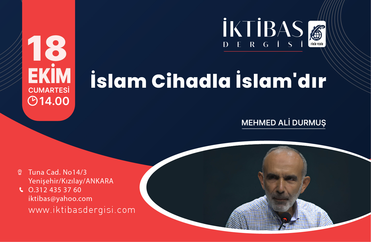İktibas Dergisi programları bu hafta sonu Mehmed Ali Durmuş’un katılacağı program ile sürüyor. “İslam Cihadla İslam’dır” başlığı altında görüşlerini paylaşacak olan Durmuş’un konuşması saat 14’te başlayacak inşallah.