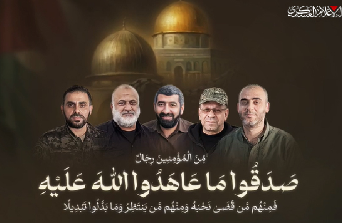 Hamas hareketi, askeri kanadı El-Kassam Tugayları’ndan beş komutanın şehadetinin ardından başsağlığı dileyerek, onları “El-Aksa Seli” savaşında şehit düşen kahramanlar olarak nitelendirdi.
