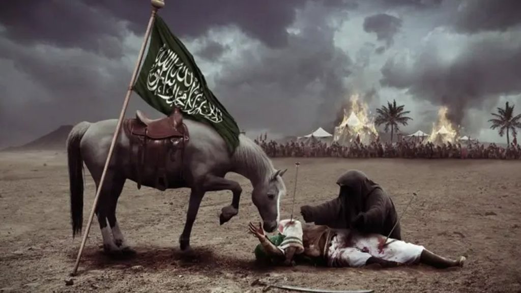 Ve bir-kaç saatlik bir direnme sonunda, Hz. Huseyn ve yârânından 72 kişi katledilir ve hepsinin başları kesilir ve bedenleri de atların ayakları altında ezilir.