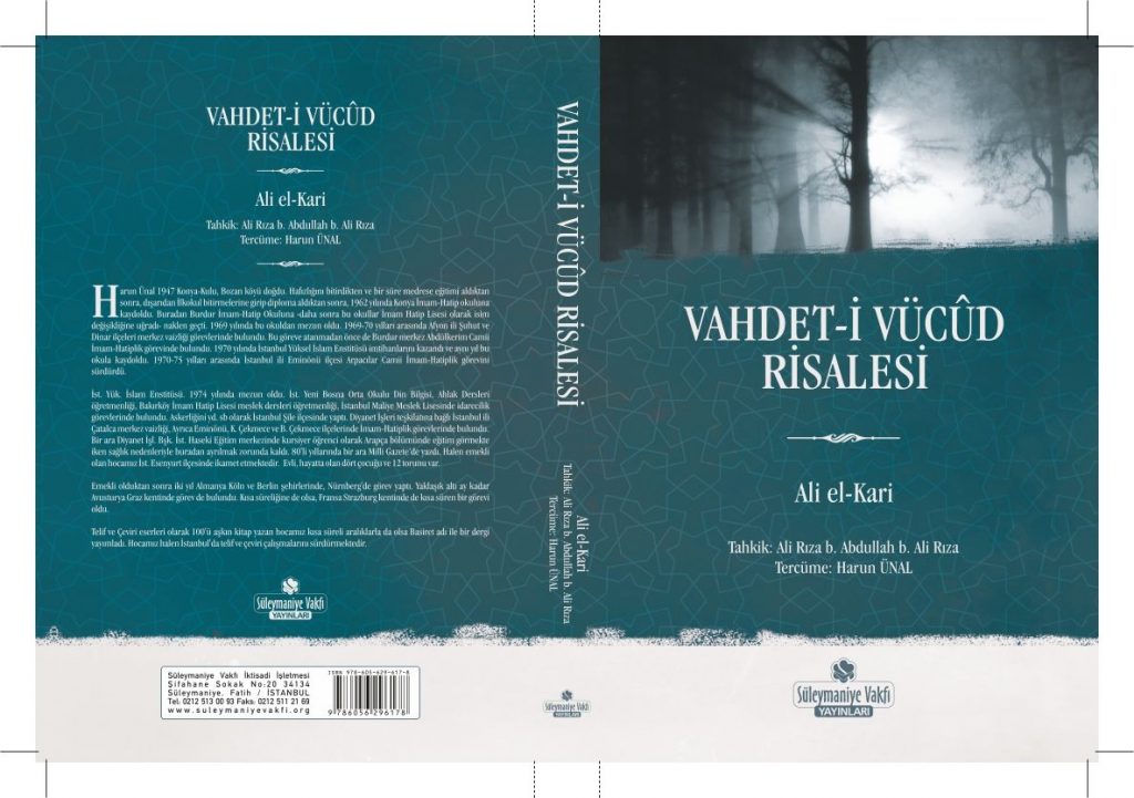 Bu kitap Süleymaniye Vakfı Yayınları tarafından 2013 yılında yayınlanmıştır. 238 sayfadan oluşan küçük hacimli bir kitaptır. Allame Ali bin Sultan el Karii diye şöhret bulan Aliyul Kari’nin bu kitabına Abdullah Ali Rıza bir mukaddime yazmıştır. Bu kitap, Allame Aliyul Kari’nin Vahdet ül Vücut nazariyesi ile ilgili olarak kaleme aldığı reddiyesidir. Ali Rıza kitabın mukaddimesinde diyor ki: “Saldırıya uğrayan alanlardan biride İslam inancıdır, İslam akidesidir. Bundan dolayı Vahdet-i Vücut görüşü sakat bir inançtır. Her şeyden münezzeh olan Allah’ın kimilerince “şu varlık aleminde var olan her şey bizzat Allah’tır” tarzındaki sakat görüşüne inanma bulanıklığıdır. Bu Batinilerden olan Karmatilerin sakat görüşünün ta kendisidir. Onların bu yönde ki liderleri ise Muhyiddin Arabi’dir Kendisi Şeyhi Ekber diye adlandırılmaktadır. Arabi’nin kendisinden sonra bıraktığı kitapları Füsus, Fütuhat vb. eserlerdir.”